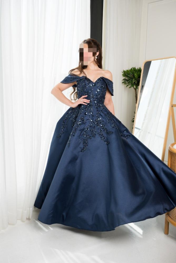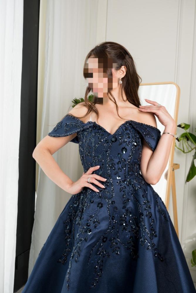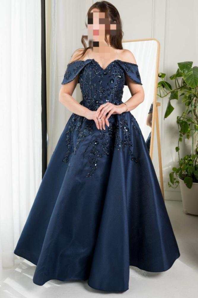 فستان سهره نسائي مطرز خرز لون كحلي